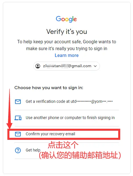 这一步骤一定要点击第三个选项,那就是确认您的辅助邮箱完整的地址